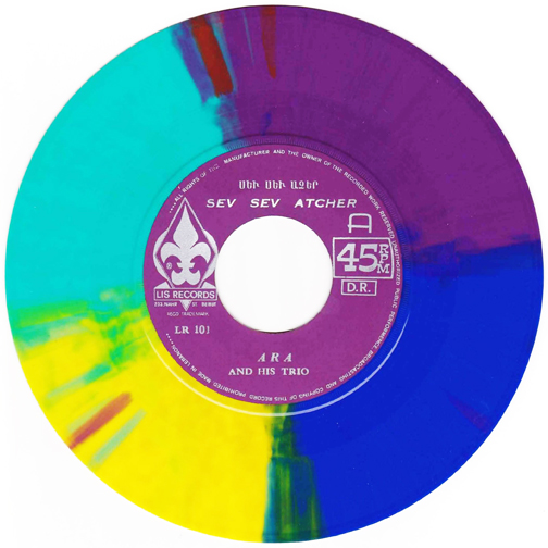 ԱՐԱ – or Ara – was an Armenian musician based in Beirut, Lebanon. He released at least one other single as Ara and His Trio – which was multi-colored record released by Lis Records with “Sev Sev Atcher” (which had also been recorded by fellow Armenian Adiss Harmandyan) on the A side and “Maria” on the flipside.
